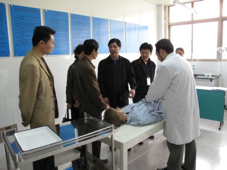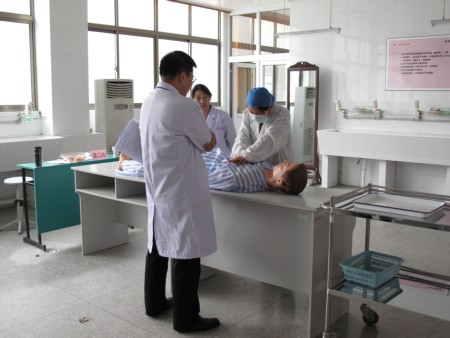 4月25日上午7点30分,医学一系毕业考试改革工作小组成员及全体考官早早来到诊断学、手术学实验室,大家各就各位,各司其职。8时,临床技能考核准时开始。第一批参加考核的2004级毕业生进入了考场。