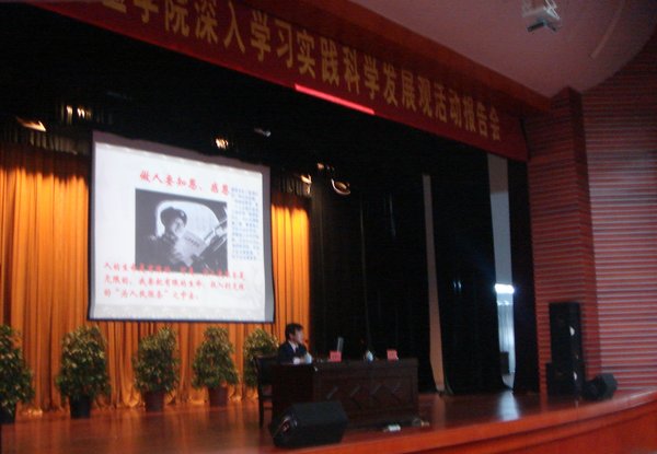 在我校改革发展的关键时期和全校上下深入学习实践科学发展观之际,4月15日下午,我校优秀校友、安徽省立医院副主任医师、副教授虞德才同志应邀来到我校,在大学生活动中心礼堂给广大师生作题为《真情奉献,青春无悔》——践行科学发展观辅导报告。学校全体党员,入党积极分子,省市人大代表、政协委员,学校各民主党派负责人以及学生代表参加了报告会。校党委副书记郑勇超同志主持报告会。