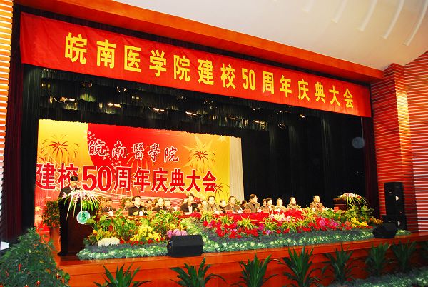 中共安徽省委、安徽省人民政府希望学校以50周年校庆为新的起点,深入贯彻落实科学发展观,秉承“精医、尚德、求实、自强”的校训精神,深化教育教学改革,加强师资队伍建设,构建学科专业优势,加快高层次人才培养,不断提高办学质量和办学效益,为推进安徽跨越式发展、加快崛起作出新的更大的贡献!