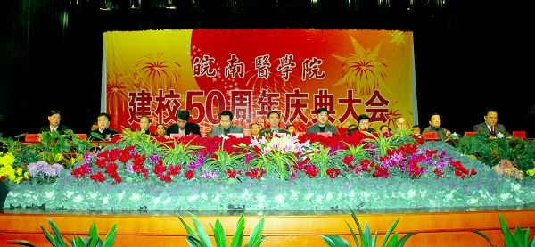 宋建国院长指出,半个世纪以来,我们坚定不移地贯彻党的教育方针,遵循高等医学教育规律,为国家培养了2万多名高级医学人才,为社会发展,特别是为皖南地区卫生的事业发展,作出了积极的贡献。皖医人没有辜负党和人民的厚望。近年来,随着改革不断深入,我校的办学规模不断扩大,学校的办学条件明显改善,专业、学科建设卓有成效,师资队伍不断加强,教学质量进一步提高,科研促教学成效显著,治校能力显著增强,精神文明建设取得可喜成绩,医疗事业快速发展,形成了校园和谐、学风严谨,各项事业蒸蒸日上的良好局面。