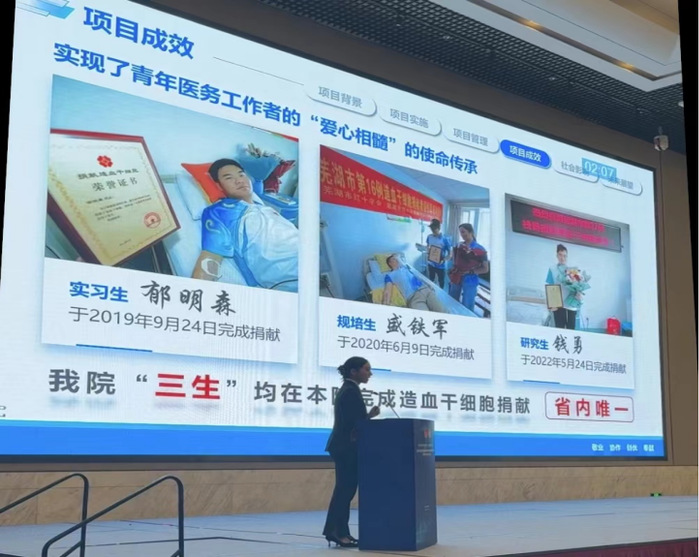 第一附属医院“爱心相髓,为生命续航”造血干细胞科普宣讲暨捐献志愿服务项目自2018年开展以来,面向全市居民,关注重点人群,以丰富的宣传载体和形式,走进高校、社区、企业单位,以“爱心相髓”造血干细胞科普宣讲为内容,打造“贴心相伴,暖心服务”、“寻找生命的种子”、“造干红遇见火焰蓝”等系列品牌活动,累计服务中国造血干细胞捐献者资料库(中华骨髓库)捐献者83名,完成非血缘造血干细胞移植25例,协助血液病患者检索非血缘无关供者100余人次,科普宣讲惠及大众群体20000余人次。