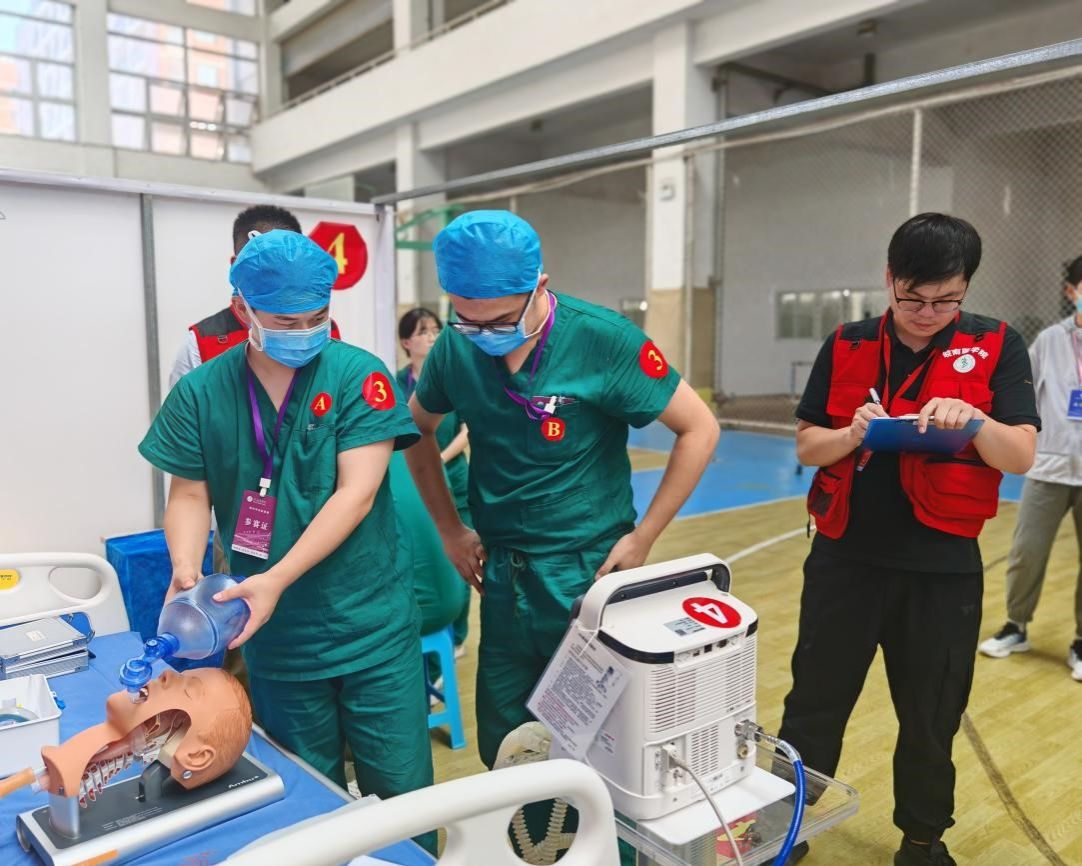 本次麻醉技能比赛内容紧扣临床执业医师考试和研究生入学考试内容,设有双腔支气管插管术、新生儿心肺复苏、呼吸机设置与调节等10个项目,重点考查学生临床思维、综合操作能力及临场应变能力,检验各实习基地的带教质量。