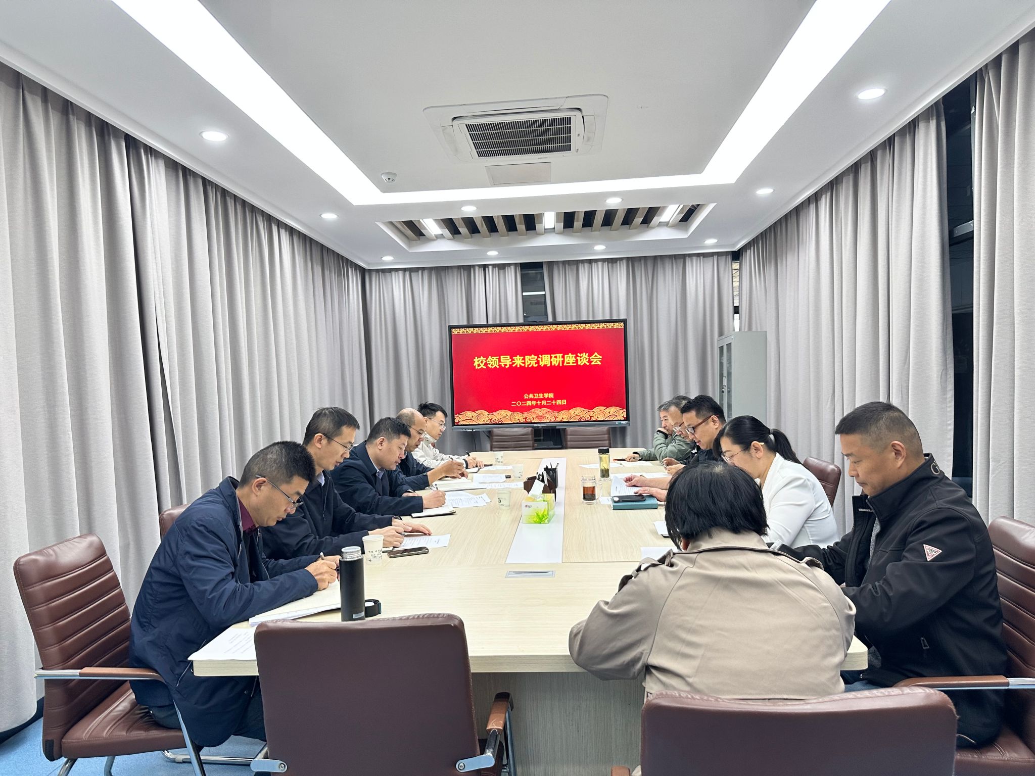 科研处负责人陪同调研,公共卫生学院党委班子成员、教研室主任、学术骨干、近三年新进博士等参加调研会。(刘磊/文 张筱婕/图)
