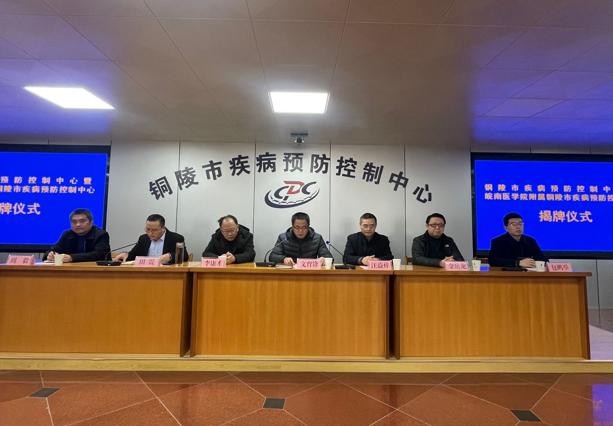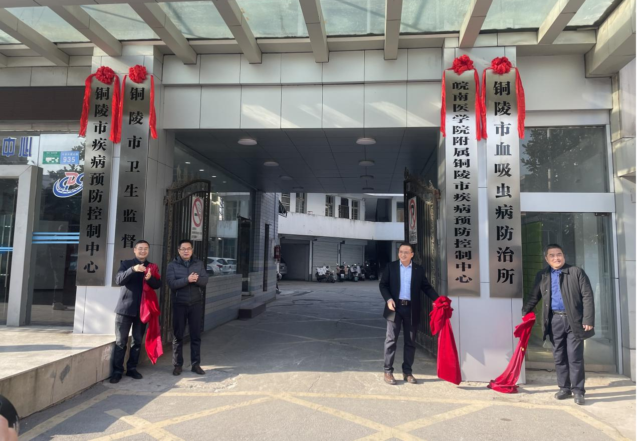 学校发展规划处(医院管理处)、公共卫生学院相关负责人参加揭牌仪式。(罗文杰/文、图)