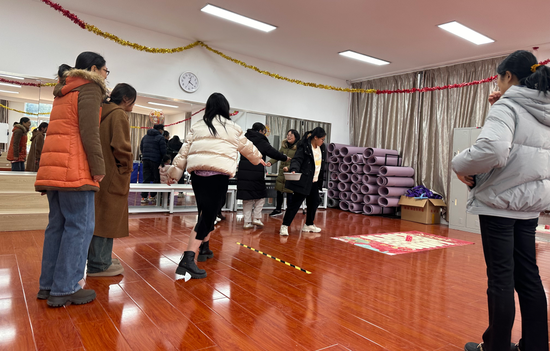趣味活动设置了丰富多彩的游戏项目,采用玩游戏赢印章的方式进行,教职工每完成一个项目,都能获得相应印章,凭印章领取奖品。在丢沙包区域,大家瞄准目标,奋力投掷,沙包以完美的弧线稳稳落地。投壶游戏中,大家手持箭羽,敛声屏气,精准命中,引发阵阵喝彩。猜灯谜比赛中,大家或驻足思考、或眉头紧锁、或恍然大悟,成功猜出谜底后,喜悦之情溢于言表。现场气氛热烈,欢声笑语不断,洋溢着浓厚的喜庆氛围。