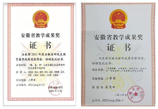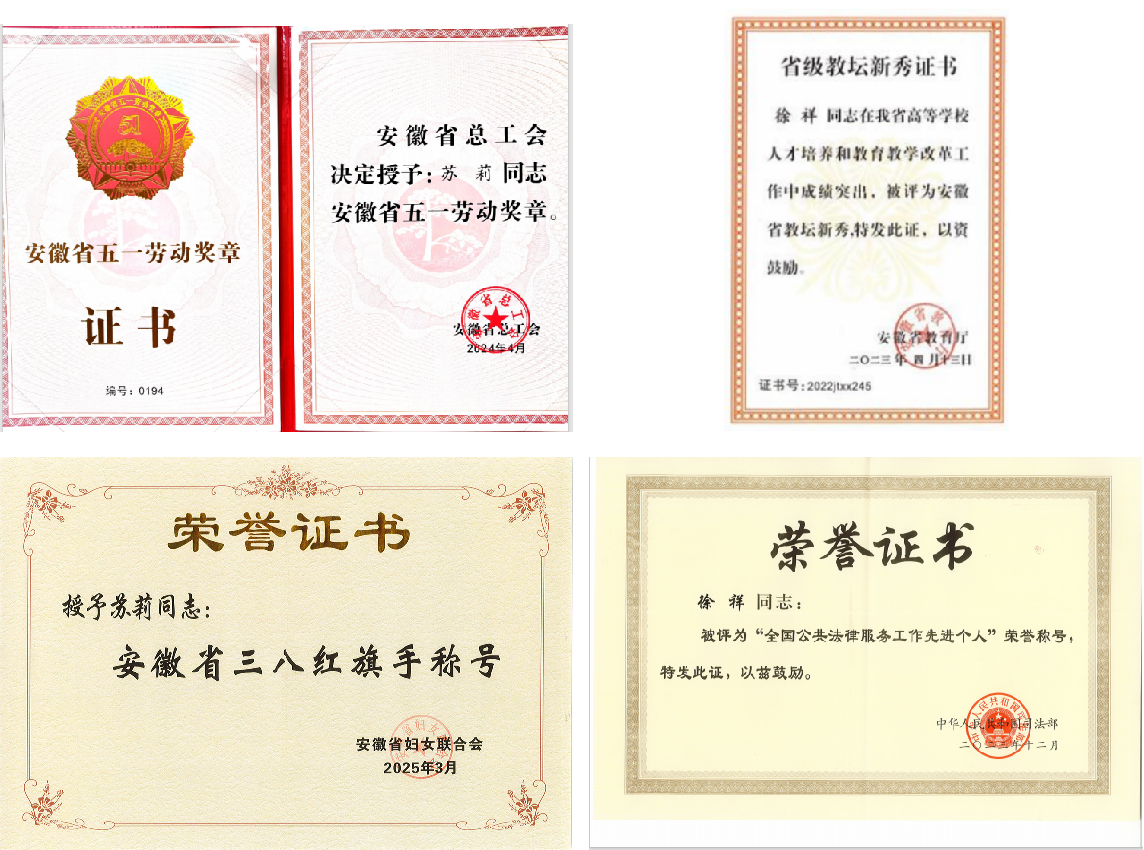 注重强化教师队伍建设。学院将思想引领和师德师风建设放在教师队伍建设的首位,引导广大教师努力成为塑造学生品格、品行、品位的“大先生”。学院现有教育部高等学校法医学类专业教学指导委员会委员1人、中国法医学会理事1人,获全国公共法律服务工作先进个人称号1人、省级教坛新秀1人、安徽省五一劳动奖章1人、法治安徽专项劳动和技能竞赛十大标兵1人、安徽省三八红旗手1人。
