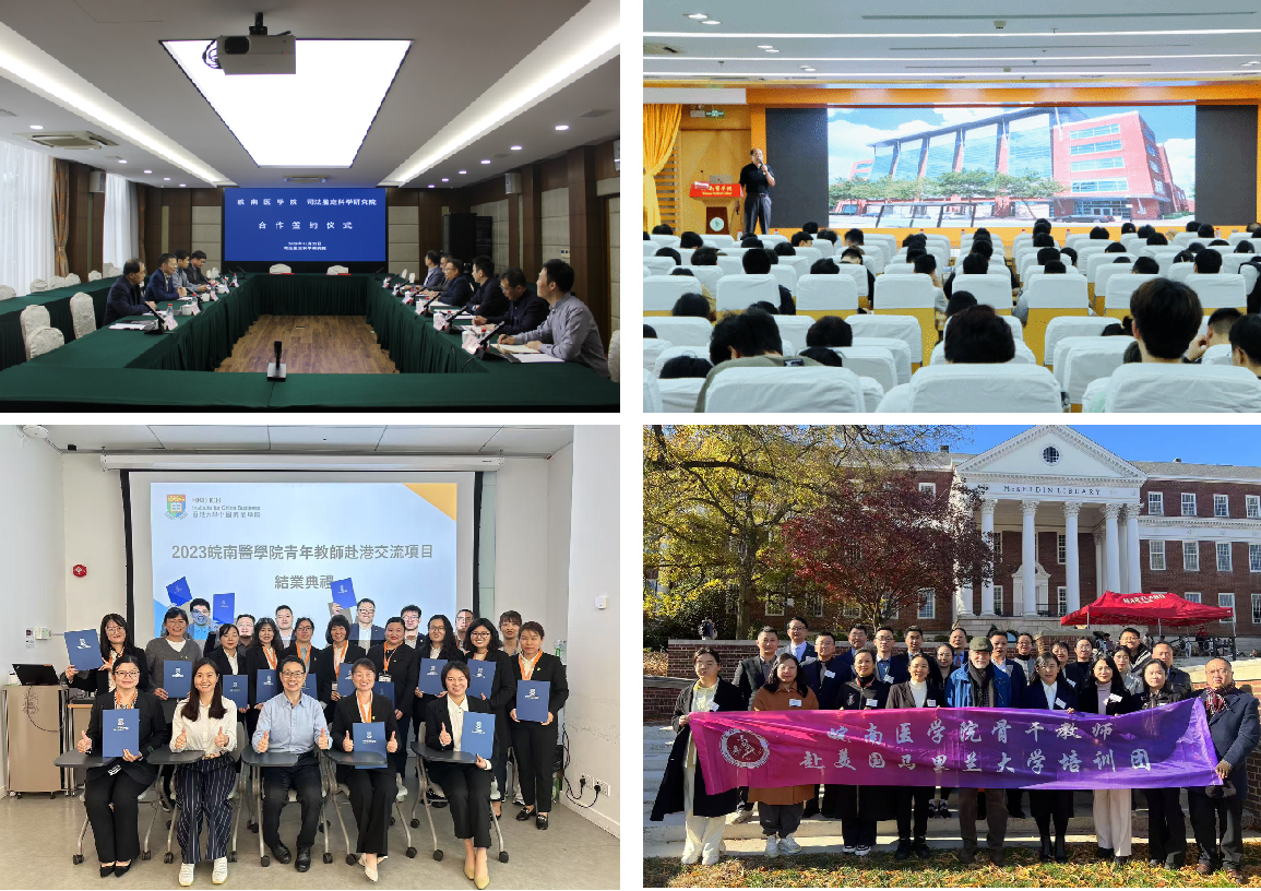 学院高度重视对外交流合作,有计划择优选派骨干教师到国内外高水平院校访学进修;定期组织开展“法医大讲堂”“法医学理论与实践新进展论坛”“法医学术交流会”等专题学术研讨会,邀请华中科技大学、浙江大学、复旦大学、美国马里兰大学等高校知名专家学者来校讲学;与司法鉴定科学研究院签署合作协议,为学校高质量发展和博士点建设增添助力。