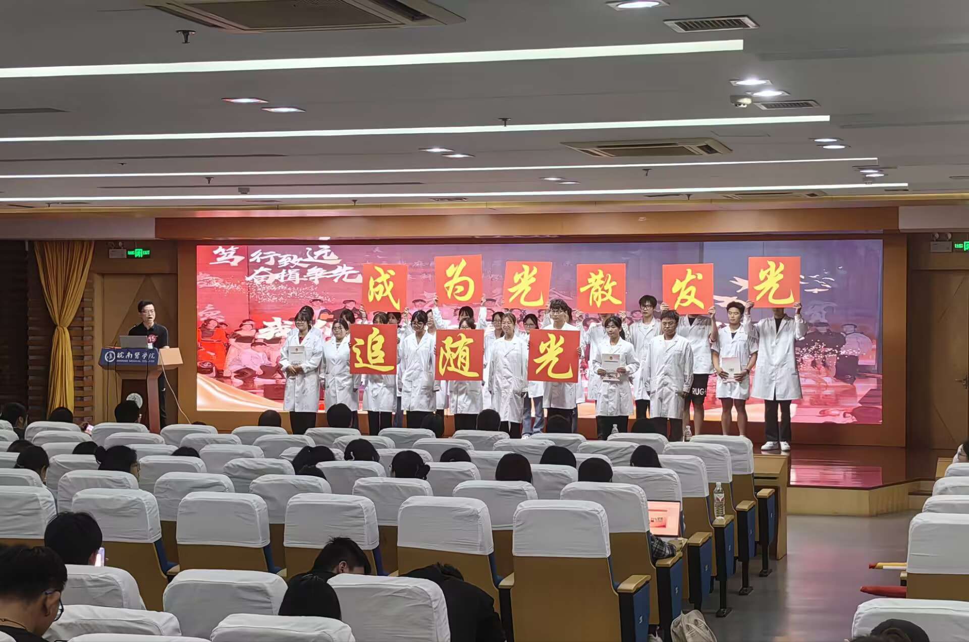 为深入落实立德树人根本任务,扎实推进“三全育人”工作,营造浓厚学习氛围,充分发挥优秀班集体的榜样示范作用,5月28日晚,我校在图书馆三楼学术报告厅举办2024年度“十佳班集体”评选汇报会,组织部、团委负责人和各学院分管学生工作负责人担任评委,学生处、辅导员代表及学生代表400余人参加。