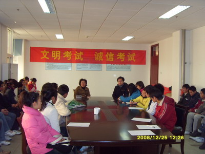 12月26日,唐传莉副主任与王娓老师、贾玲老师、杨丹老师一起为05级口腔、08级新生进行“诚信考试”教育。唐传莉副主任强调了考场纪律,指出大学生要有良好的形象,要树立“诚信为人、诚信为学”的道德观念,要求学生干部发挥模范带头作用,做成诚信考试中做出表率。