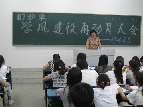 为了进一步促进2007级护理本科学风、班风的建设,5月30日晚,2007级护理本科在东教学楼107教室召开学风建设再动员大会,落实贯彻系部制定的 “班级管理责任到人”的制度,王雪琴老师主持会议,07级各班班长、60多位责任人参加了会议。