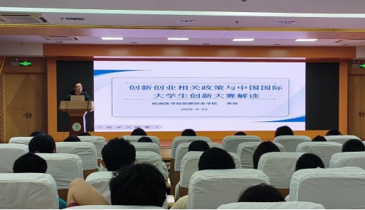 活动第一项为大学生创新大赛政策解读与经验交流。公共基础学院秘书黄旭介绍了创新创业相关政策和中国国际大学生创新大赛项目赛道的分类及要求,对如何打造一个优秀项目进行了深入细致地阐述,为同学们提供了专业的指导;2024年中国国际大学生创新大赛主赛道国家级铜奖负责人黄宇、常清泉分别结合自身参赛经历,分享了如何挖掘项目亮点、团队协作的重要性,以及在项目推进过程中的创新思维与实践方法,让在场同学深受启发。