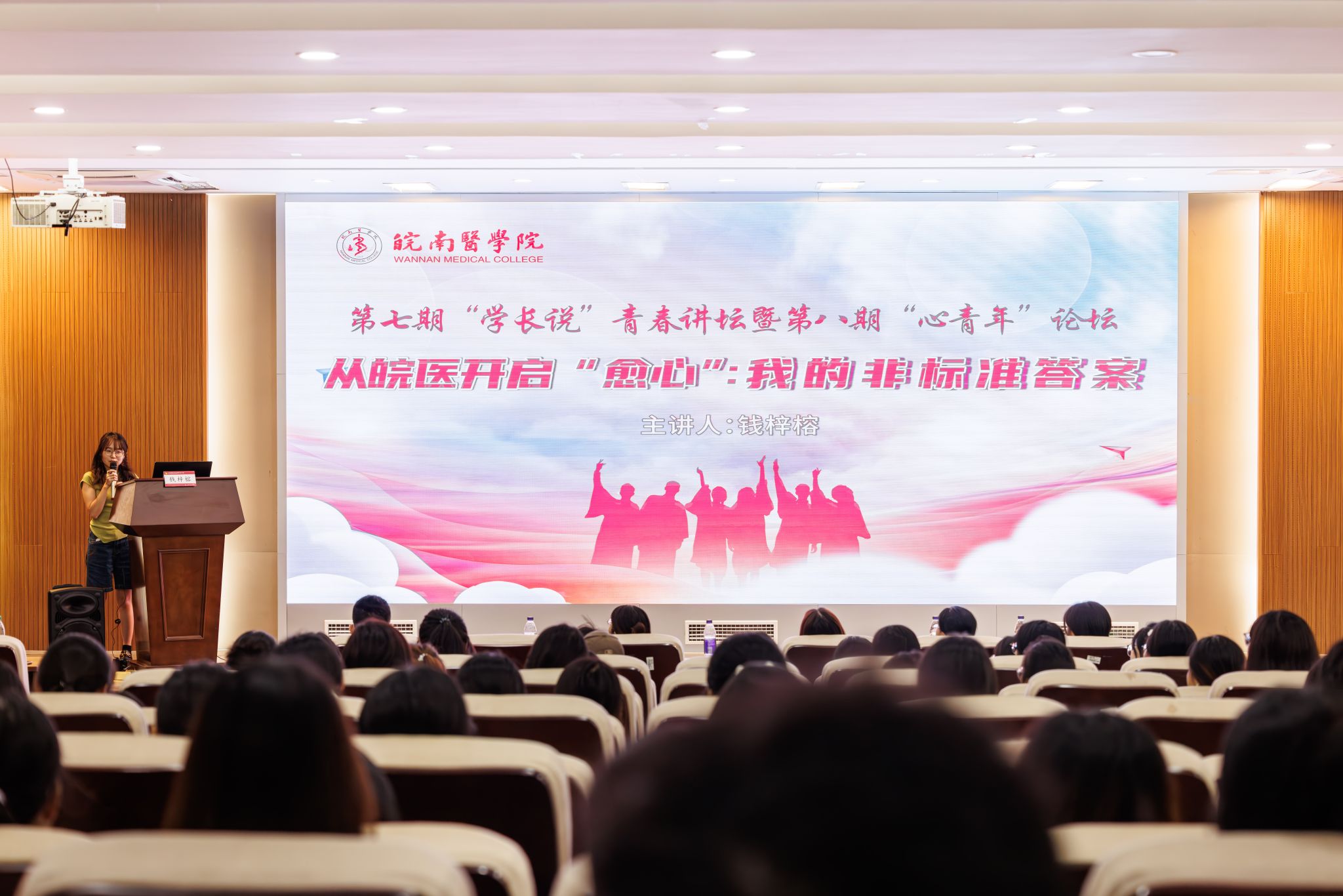 心海远航,学成而归。9月21日,我校在南区多功能报告厅成功举办第七期“学长说”青春讲坛暨第八期“心青年”论坛。本次活动以“从皖医开启‘愈心’:我的非标准答案”为主题,特邀2018届应用心理学专业优秀校友、复旦大学附属儿科医院精神心理科心理治疗师钱梓榕回到母校,与现场200余名师生分享她从皖医走向德国马尔堡大学,再步入复旦工作的成长历程与人生体悟。