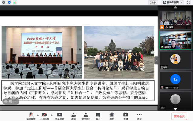 2021年3月11日下午,绍兴文理学院副院长柳国庆教授受邀通过腾讯课堂线上为护理学院作题为“仁术兼修,知行合一——绍兴文理学院医学人文教育的探索与思考”专题讲座。讲座由护理学院院长李远珍主持,学院50余名专兼职教师线下集中聆听了讲座。