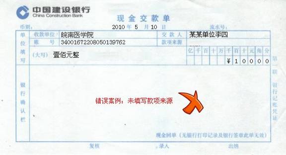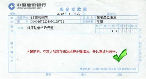 左:按交款单上注明的收款人名称,账号,开户行,填写清楚