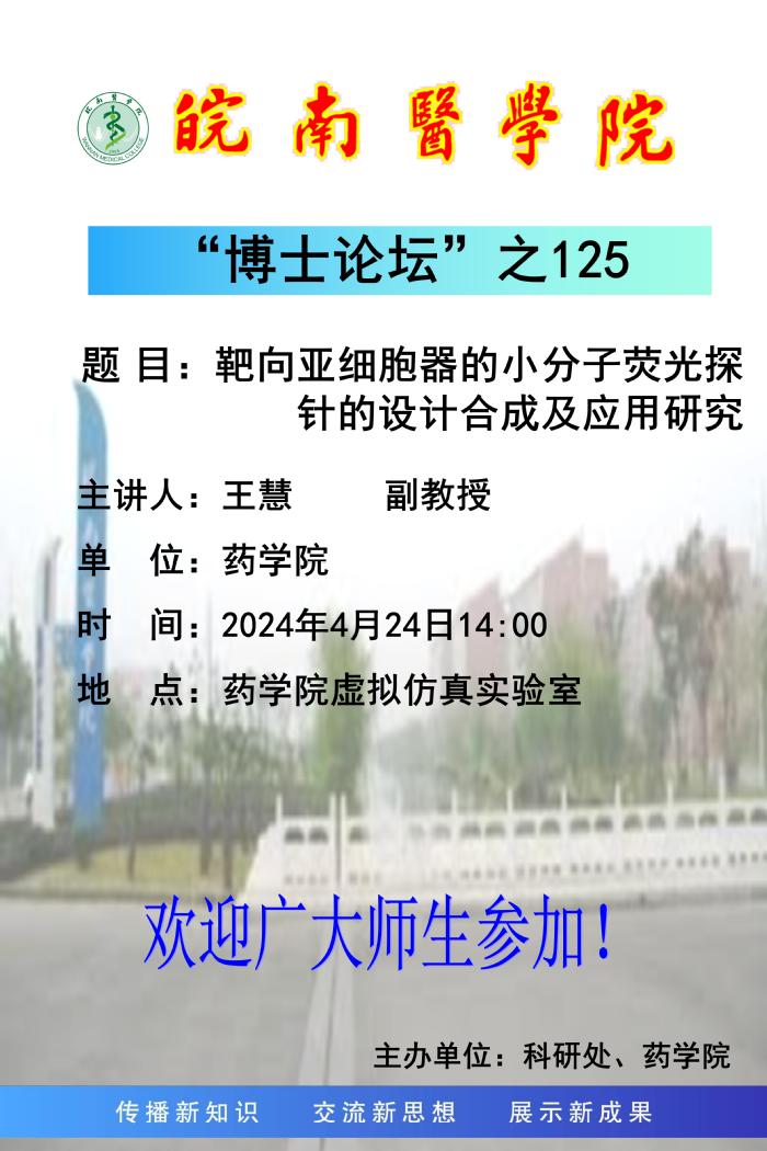 博士论坛之125:靶向亚细胞器的小分子荧光探针的设计合成及应用研究